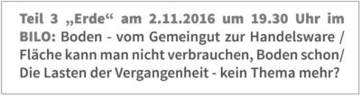 Thema ERDE – Lebensräume und Lebensgrundlagen, Rohstoffquellen und Müllgruben – am 2. November 2016