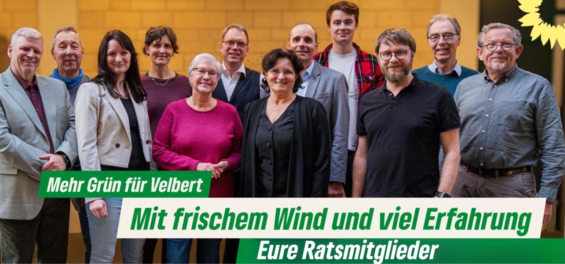 Mehr Grün für Velbert! Herzlich willkommen auf der Homepage von Bündnis 90/Die Grünen, Ortsverband Velbert! Nachhaltigkeit in ökologischen, sozialen und gesellschaftlichen Fragen, dafür stehen und setzen wir uns ein, hier in der „Stadt der Schlösser und Beschläge“. Wir brauchen auch Deine Unterstützung! Über Anregungen, Fragen, Hinweise, Ideen und vieles mehr freuen wir uns! Aktuell Neuer Rat tritt erstmals zusammen – u. a. zur Wahl der Stellvertreter des Bürgermeisters6. November 2025Am Dienstag, 4. November 2025, ist der neue Velberter Stadtrat erstmals nach der Kommunalwahl und der anschließenden Stichwahl um das Amt der Bürgermeisterin bzw. des Bürgermeisters im September zusammengetreten. Die… Neuer Rat tritt erstmals zusammen – u. a. zur Wahl der Stellvertreter des Bürgermeisters weiterlesen „Gemeinsam – für ein Velbert“: Vier Partner schließen Koalition mit stabiler Mehrheit4. November 2025CDU, Bündnis 90/Die Grünen, FDP und Velbert Gemeinsam bilden für die Wahlperiode 2025–2030 eine gemeinsame Koalition im Rat der Stadt Velbert. Mit 43 von 81 Stimmen verfügt das Bündnis über… „Gemeinsam – für ein Velbert“: Vier Partner schließen Koalition mit stabiler Mehrheit weiterlesen Grüne starten mit neuem Fraktionsvorstand in die Wahlperiode 20258. Oktober 2025Am Montag, 6. Oktober 2025, wählte die Fraktion der Velberter Grünen mit großer Mehrheit ihren neuen Fraktionsvorstand. Das Team besteht aus Hans-Wilhelm Dorgarten, der bereits seit zwei Jahren dem Fraktionsvorstand angehört,… Grüne starten mit neuem Fraktionsvorstand in die Wahlperiode 2025 weiterlesen Esther Kanschat dankt ihren Wählern für Vertrauen29. September 2025Die Bürgermeisterkandidatin der Velberter Grünen hat bei der diesjährigen Kommunalwahl 18,97 % der Stimmen erreicht und zog damit in die Stichwahl am 28. September ein. Mit großer Spannung wurde das… Esther Kanschat dankt ihren Wählern für Vertrauen weiterlesen Zerstörung von Wahlplakaten in Velbert – Grüne verurteilen Sachbeschädigung und Diebstahl21. August 2025In Velbert-Mitte und Velbert-Langenberg kam es zu gezielten Zerstörungen und Diebstählen von Wahlplakaten der Grünen. Die Plakate wurden beschädigt, beschmiert oder entfernt. Besonders betroffen sind die Plakate des Ratsmitglieds Martin… Zerstörung von Wahlplakaten in Velbert – Grüne verurteilen Sachbeschädigung und Diebstahl weiterlesen Mobilität, die verbindet – Einladung zum gemeinsamen Austausch1. August 2025Die Velberter Grünen laden gemeinsam mit der Landtagsabgeordneten Ina Besche-Krastl herzlich zu einem Bürgergespräch unter dem Thema Mobilität ein. Ziel ist es, gemeinsam über zukunftsfähige und nachhaltige Mobilitätslösungen für Velbert… Mobilität, die verbindet – Einladung zum gemeinsamen Austausch weiterlesen
