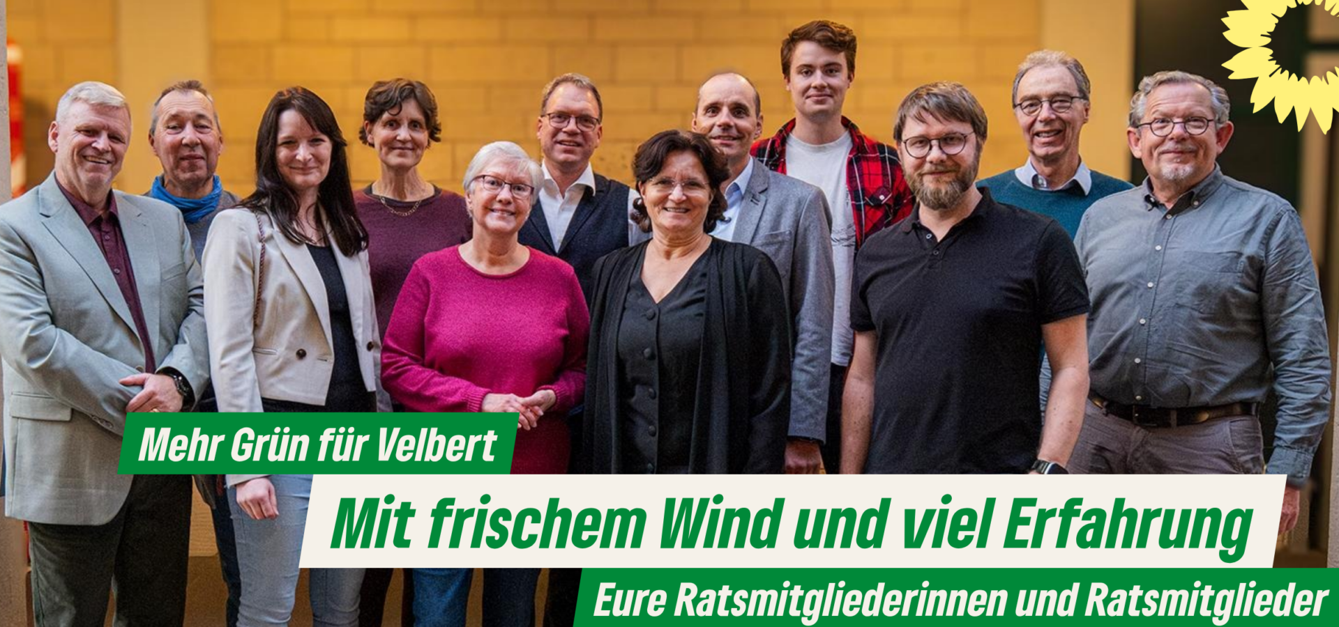 Mehr Grün für Velbert! Herzlich willkommen auf der Homepage von Bündnis 90/Die Grünen, Ortsverband Velbert! Nachhaltigkeit in ökologischen, sozialen und gesellschaftlichen Fragen, dafür stehen und setzen wir uns ein, hier in der „Stadt der Schlösser und Beschläge“. Wir brauchen auch Deine Unterstützung! Über Anregungen, Fragen, Hinweise, Ideen und vieles mehr freuen wir uns! Aktuell Neuer Rat tritt erstmals zusammen – u. a. zur Wahl der Stellvertreter des Bürgermeisters6. November 2025Am Dienstag, 4. November 2025, ist der neue Velberter Stadtrat erstmals nach der Kommunalwahl und der anschließenden Stichwahl um das Amt der Bürgermeisterin bzw. des Bürgermeisters im September zusammengetreten. Die… Neuer Rat tritt erstmals zusammen – u. a. zur Wahl der Stellvertreter des Bürgermeisters weiterlesen „Gemeinsam – für ein Velbert“: Vier Partner schließen Koalition mit stabiler Mehrheit4. November 2025CDU, Bündnis 90/Die Grünen, FDP und Velbert Gemeinsam bilden für die Wahlperiode 2025–2030 eine gemeinsame Koalition im Rat der Stadt Velbert. Mit 43 von 81 Stimmen verfügt das Bündnis über… „Gemeinsam – für ein Velbert“: Vier Partner schließen Koalition mit stabiler Mehrheit weiterlesen Grüne starten mit neuem Fraktionsvorstand in die Wahlperiode 20258. Oktober 2025Am Montag, 6. Oktober 2025, wählte die Fraktion der Velberter Grünen mit großer Mehrheit ihren neuen Fraktionsvorstand. Das Team besteht aus Hans-Wilhelm Dorgarten, der bereits seit zwei Jahren dem Fraktionsvorstand angehört,… Grüne starten mit neuem Fraktionsvorstand in die Wahlperiode 2025 weiterlesen Esther Kanschat dankt ihren Wählern für Vertrauen29. September 2025Die Bürgermeisterkandidatin der Velberter Grünen hat bei der diesjährigen Kommunalwahl 18,97 % der Stimmen erreicht und zog damit in die Stichwahl am 28. September ein. Mit großer Spannung wurde das… Esther Kanschat dankt ihren Wählern für Vertrauen weiterlesen Zerstörung von Wahlplakaten in Velbert – Grüne verurteilen Sachbeschädigung und Diebstahl21. August 2025In Velbert-Mitte und Velbert-Langenberg kam es zu gezielten Zerstörungen und Diebstählen von Wahlplakaten der Grünen. Die Plakate wurden beschädigt, beschmiert oder entfernt. Besonders betroffen sind die Plakate des Ratsmitglieds Martin… Zerstörung von Wahlplakaten in Velbert – Grüne verurteilen Sachbeschädigung und Diebstahl weiterlesen Mobilität, die verbindet – Einladung zum gemeinsamen Austausch1. August 2025Die Velberter Grünen laden gemeinsam mit der Landtagsabgeordneten Ina Besche-Krastl herzlich zu einem Bürgergespräch unter dem Thema Mobilität ein. Ziel ist es, gemeinsam über zukunftsfähige und nachhaltige Mobilitätslösungen für Velbert… Mobilität, die verbindet – Einladung zum gemeinsamen Austausch weiterlesen